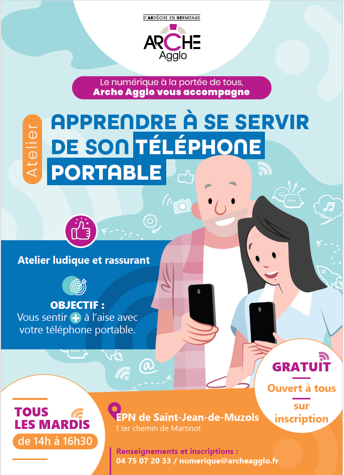 Des ateliers numériques développés par Arche Agglo en AVRIL dans différents lieux au plus près des habitants : Espaces Publics numériques de St Jean de Muzols et Saint Félicien, France Services de Tain l’Hermitage et St Félicien, Pont de l’Isère MJC des 2 Rives, communes de Vion et bibliothèque intercommunale de Tournon S/Rhône. Pour plus d’informations